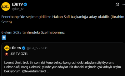 Fenerbahçe’de bir seçim olup olmayacağı kamuoyu tarafından merak uyandırırken İbrahim Seten, seçimin olması halinde Fenerbahçe’nin eski yöneticisi Hakan Safi’nin başkan adayı olabileceğini belirtti.