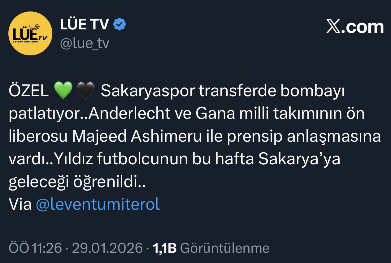 Trendyol 1. Lig ekiplerinden Sakaryaspor, transfer dönemine damga vuracak bir hamle yaparak orta sahasını dünyaca ünlü bir isimle güçlendirmeye hazırlanıyor. Levent Ümit Erol’un özel haberine göre, yeşil-siyahlı ekip, Belçika’nın köklü kulüplerinden Anderlecht forması giyen ve Gana Milli Takımı’nın da önemli isimlerinden biri olan ön libero Majeed Ashimeru ile prensip anlaşmasına vardı.